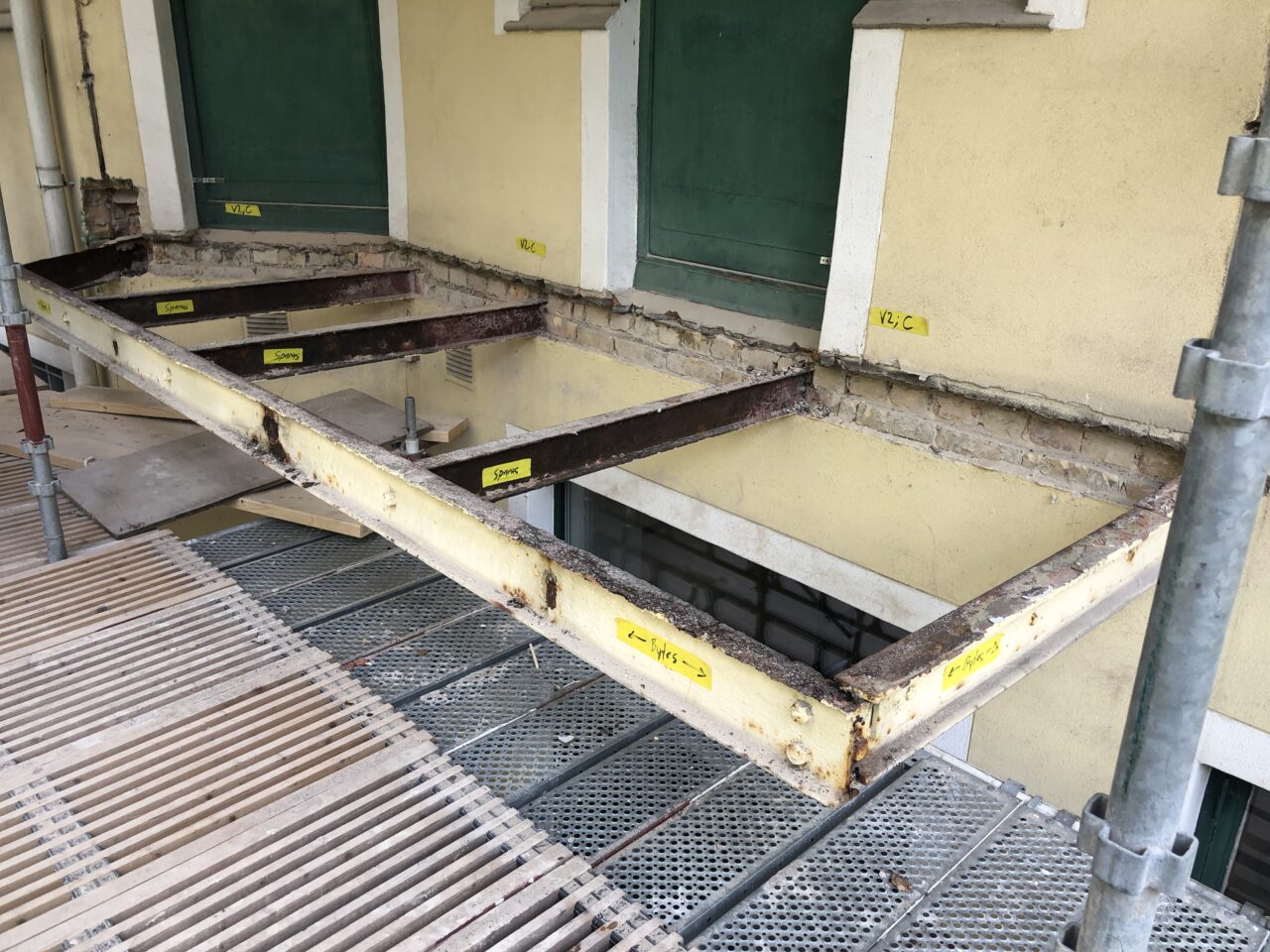 För att skapa en stabil och långsiktigt hållbar konstruktion valde vi att gjuta om samtliga balkongplattor på både gatu- och gårdsfasaderna. Detta innebar att de gamla, skadade plattorna revs och ersattes med nya, armerade betongplattor. Detta grundläggande arbete säkerställer balkongernas strukturella integritet och förlänger deras livslängd avsevärt.