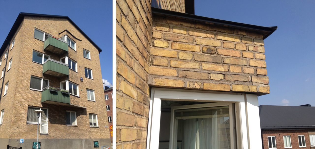 Morneon fick ett samtal från en bekymrad bostadsrättsförening. Samma dag undersökte vi på plats murverket ovanför fönstren i ett burspråk. Det var i akut behov av renovering, då det var risk för ras.
