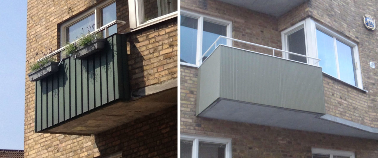 Som en option/ sidoanbud i offerten fanns möjligheten att återställa balkongräckena till ursprungsutseendet med smidesräcken.