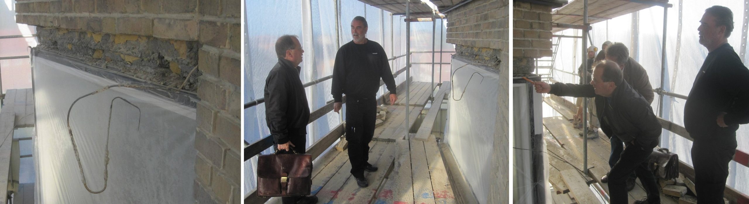 I offerten ingick syn av extern konstruktör, Tomas Gustavsson – en av södra Sveriges främsta tegel- och murverkskonstruktörer. En gemensam lösning mellan Tomas och Christer, Morneons arbetsledare, diskuterades fram med målet att renovera det utåtgående hörnet i burspråket utan att påverka fasadens utseende.