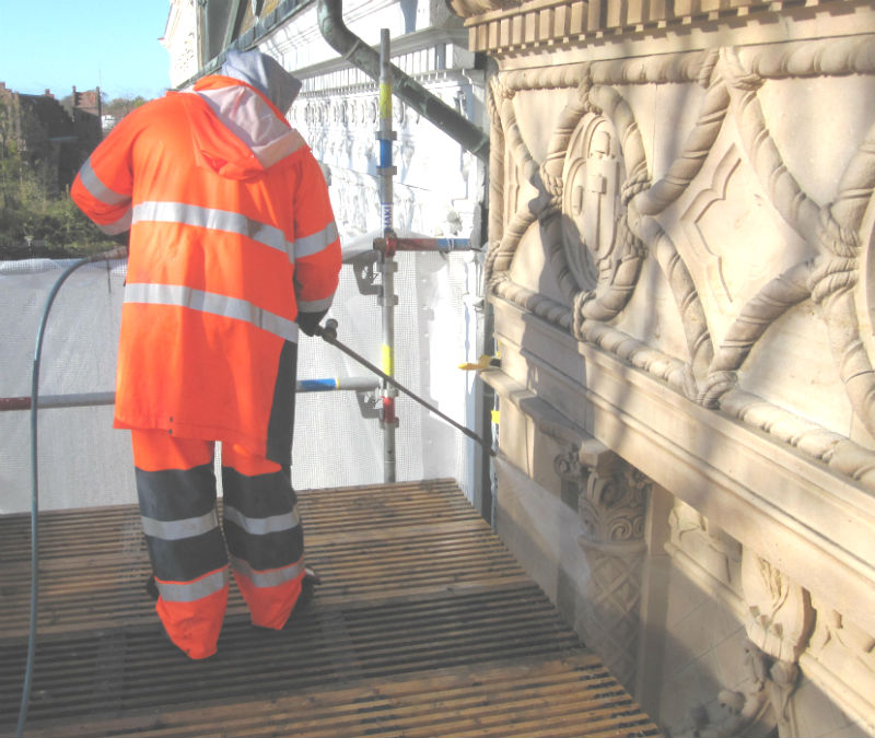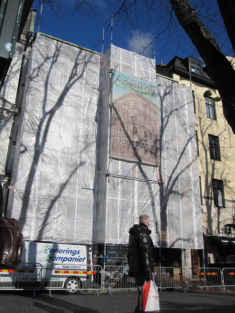 Bantorget 4, Lund – Fasadrengöring av sandstensfasad