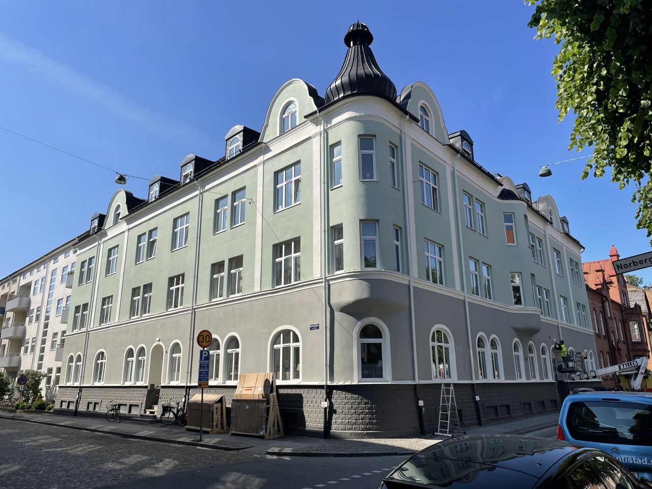 Under våren 2021 utförde vi en fasadrenovering av hörnhuset med adress Södra Esplanaden 8, Lund. Vill du veta mer om våra tjänster kopplade till renovering av putsade fasader följer du länken, klicka här.