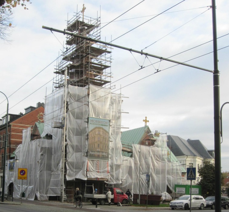 Här ser ni några bilder från renoveringen av Johannes Döparens katolska församling. Läs mer projektet under fasadrenovering i Landskrona.