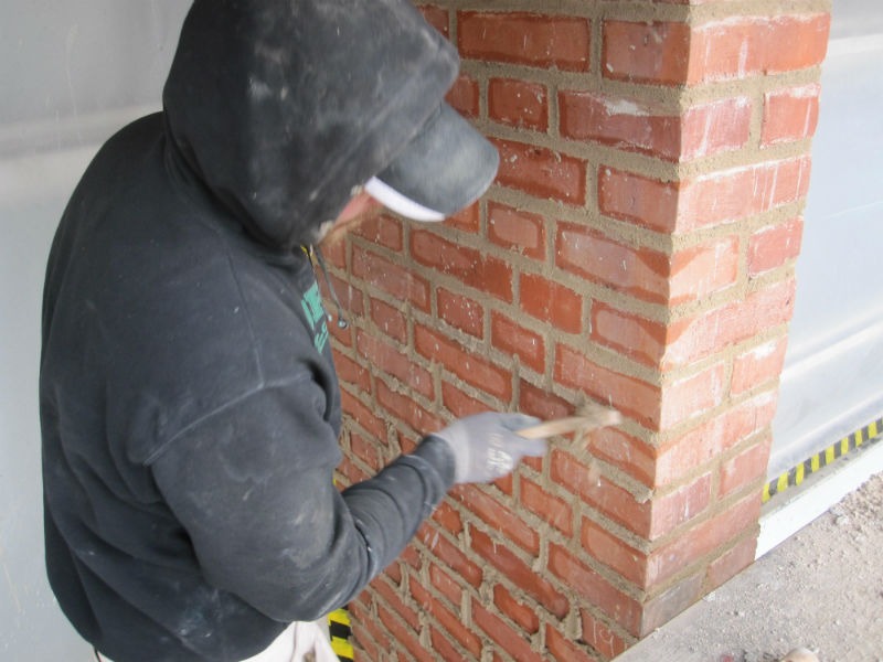 Det är mycket viktigt att teglets anlagsytor är rena så att det nya bruket bränner fast i teglet och inte i kratsdammet.
