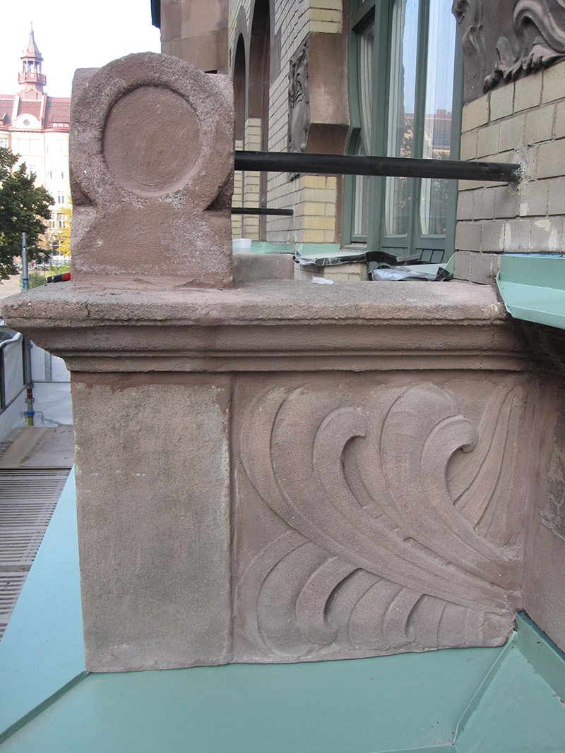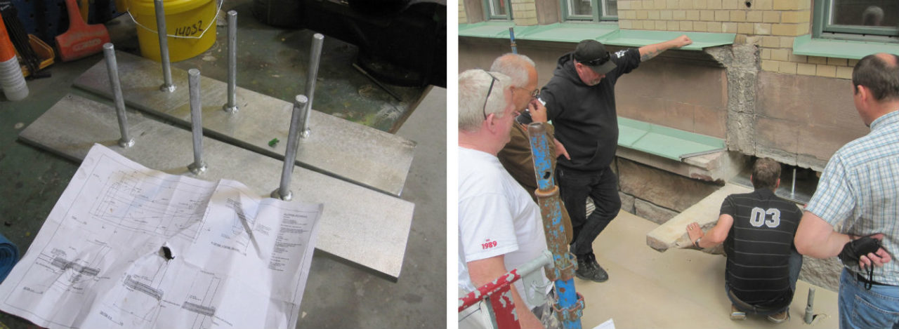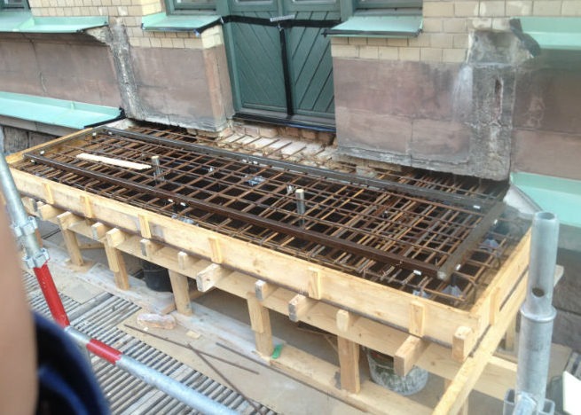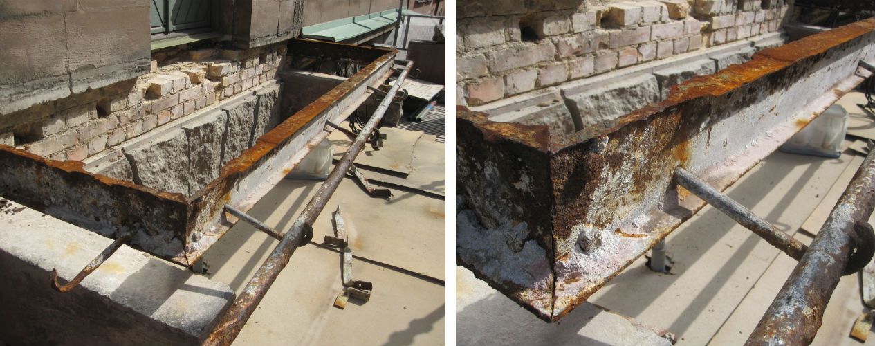 Det fanns inga original-konstruktionsritningar att tillgå. Efter en undersökning stod det klart att det var en rambalkong, med kraftiga rostangrepp på bärande balkar.