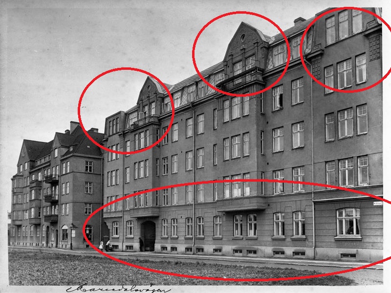 Innan man startar ett sådant här projekt är det ett hundratals mått som ska tas och dokumenteras så att befintliga förhållande återskapas i omputsad fasad. Material leverantörer till projektet var Weber för kalkbruken och fasaden avfärgades med kalkfärg från Målarkalk.