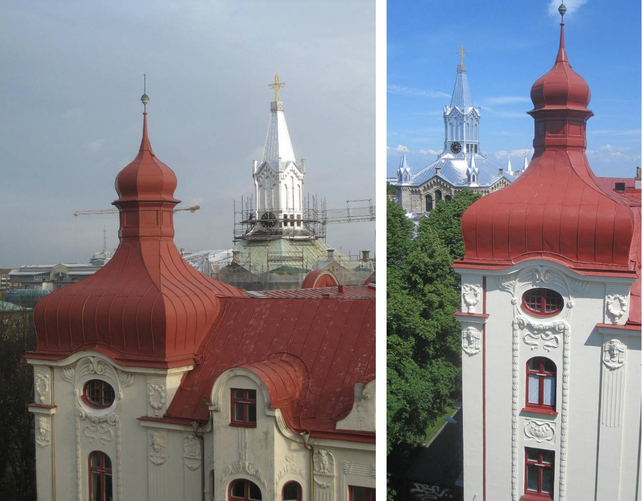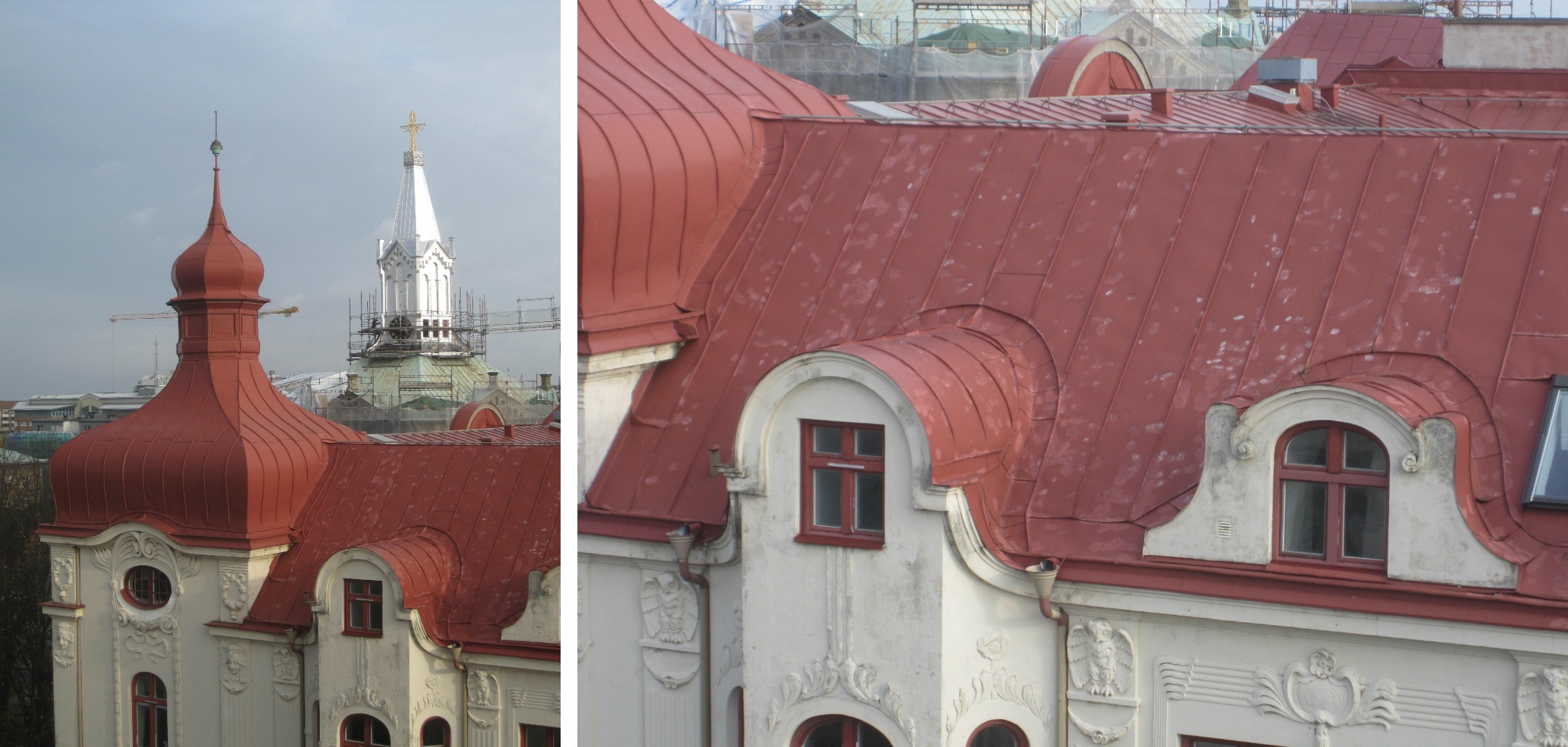 Tak och fasader före och efter renovering.