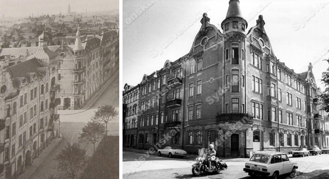 Fasader före och efter renovering.