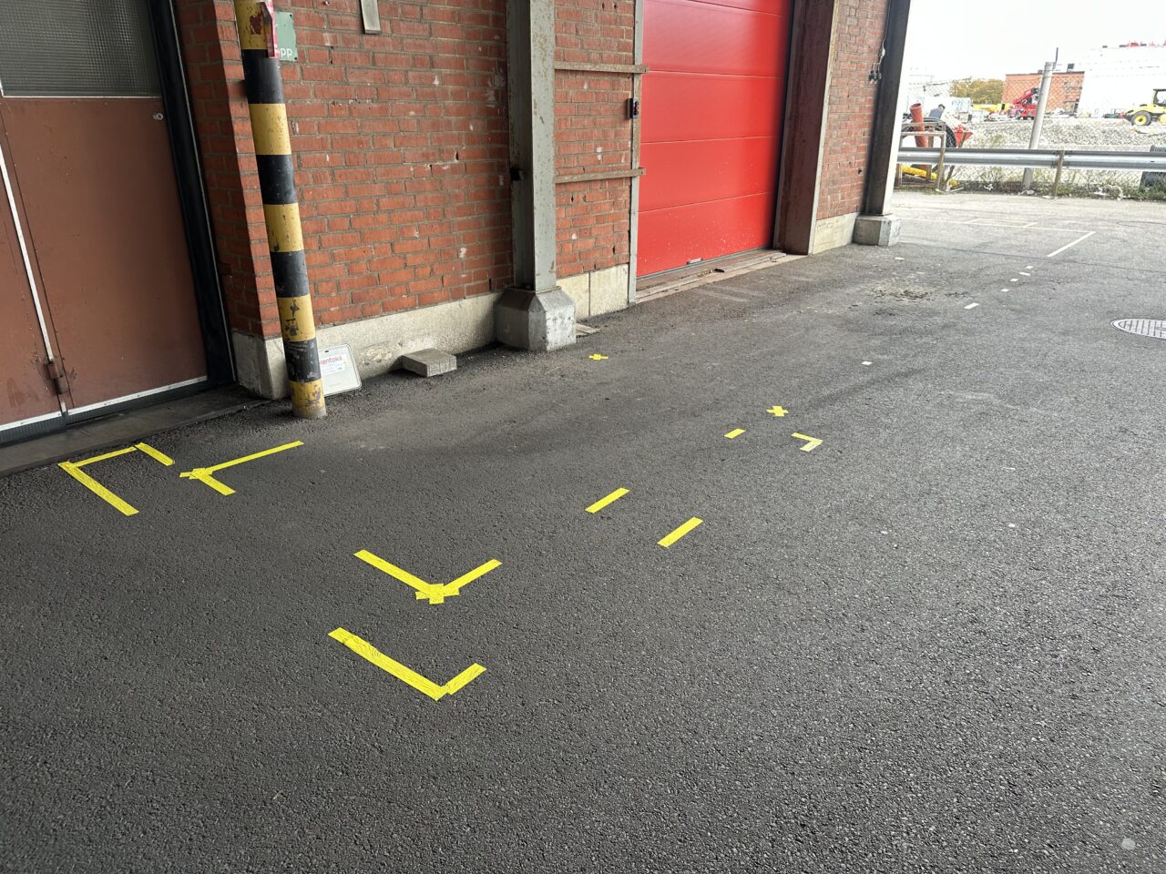 Innan start byggställningsmontag hade vi ett samordningsmöte med var byggställningsleverantör och mätte ut och markerade var byggställningen skulle stå i skalla 1 till 1. Samt så kunde hyresgäster se var byggställningen skulle komma och lämna feedback.