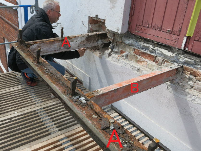 När vi kom till objektet första gången hade redan någon före oss dömt ut balkongerna och stämpning hade utförts som tillfällig åtgärd. Balkonerna var lite speciella med speglar på plattornas undersida och räckena hade extra detaljgrad i profiler m.m.