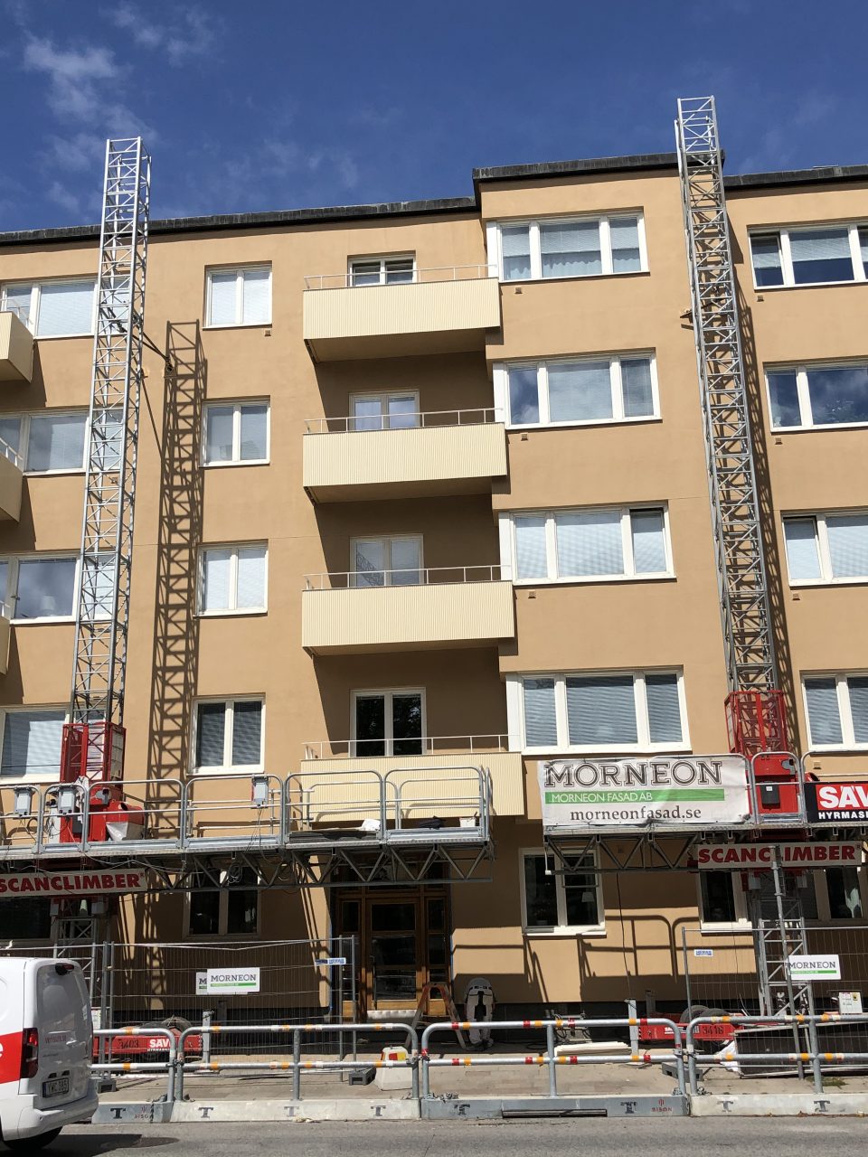 I konkurreras handlades Morneon Fasad upp för att utföra fasadrenovering och gårdsfasader och gatufasader. I projektet skulle balkonger på gatufasader renoveras, Nya balkonger skulle byggas på gårdsfasader samt skulle gårdsfasader tilläggsisoleras.