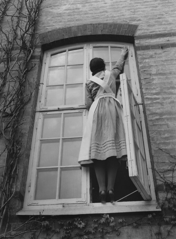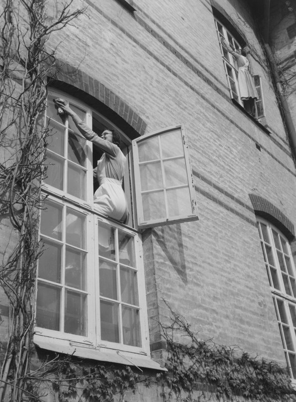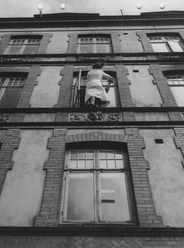 I de bostäder som byggdes före 1930 var det vanligast att fönster öppnades utåt. Vid fönsterbyte idag finns det många aspekter och detaljer att förhålla sig till. Utåtgående fönster är oftast mer smäckra än inåtgående fönster, vilket ger en väsentlig skillnad i utseende. Vi menar dock att vi inte med berått mod kan fortsätta använda oss av utåtgående fönster i flerfamiljshus. Inte minst med tanke på säkerheten för fönsterputsarna, vilket bilderna illustrerar.